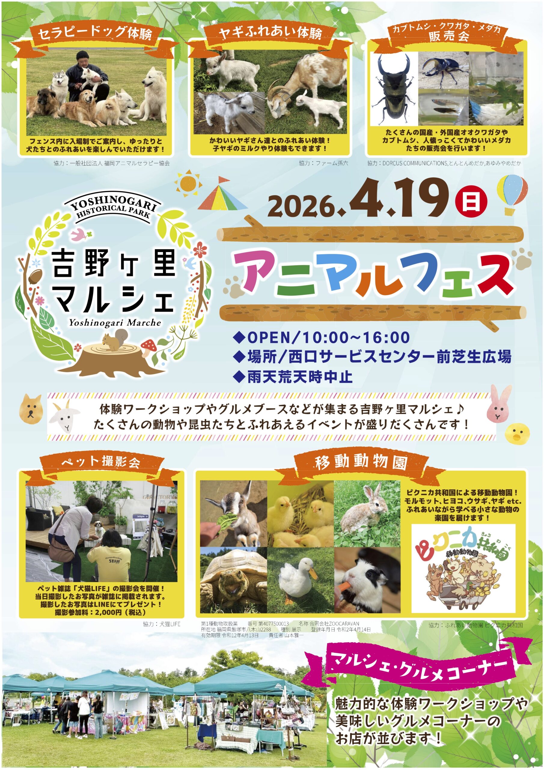 2026年4月19日(日)開催「吉野ヶ里マルシェ アニマルフェス」に参加します。